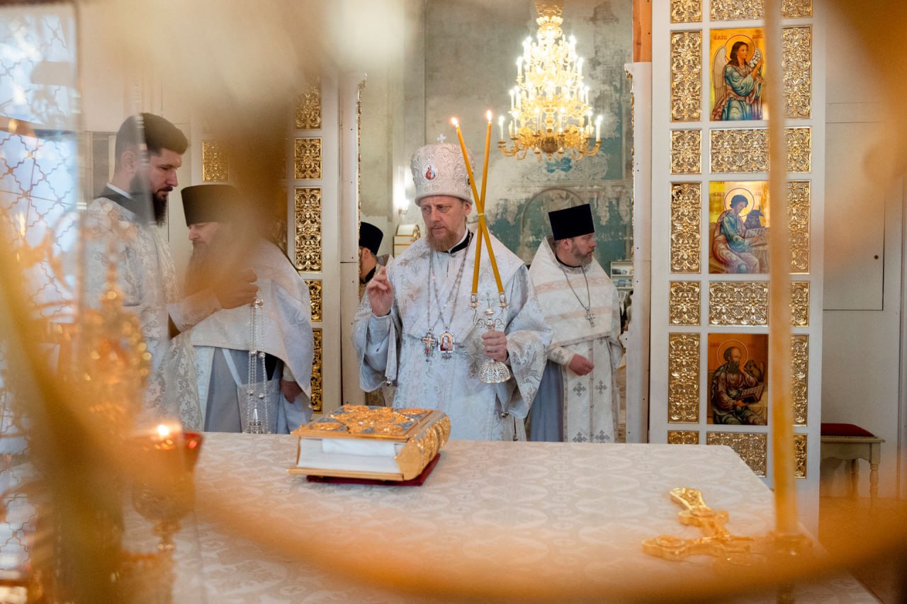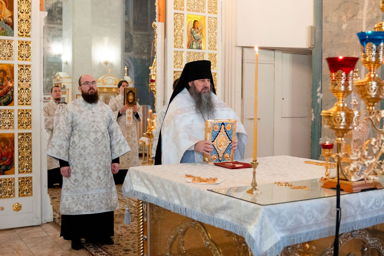 Его Преосвященству сослужили: благочинный Угличского района игумен Николай (Шишкин), священник Димитрий Кульбаков, священник Михаил Злотников, диакон Владимир Принёв, диакон Алексей Герасимов.