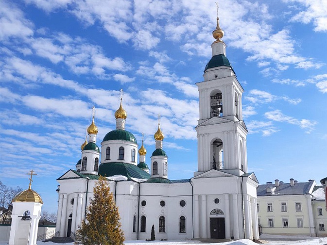 Строительство началось 21 мая 1805 г. при игуменье Маргарите, а завершилось в 1818 г. при игуменье Августе (Чепчуговой). Интерьер храма был расписан в 1822-1824 гг. артелью известного провинциального живописца Епифана Алексеевича Медведева.