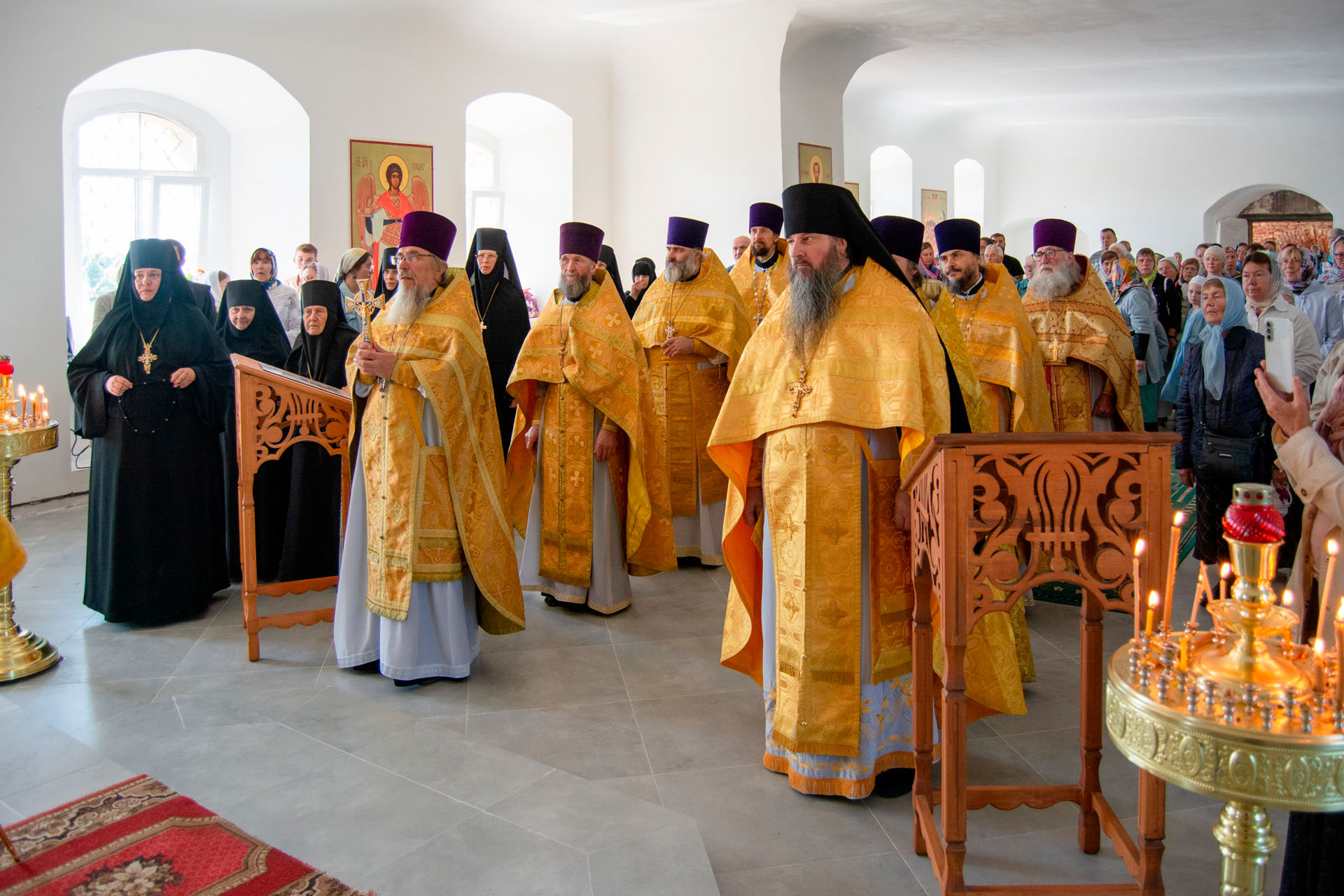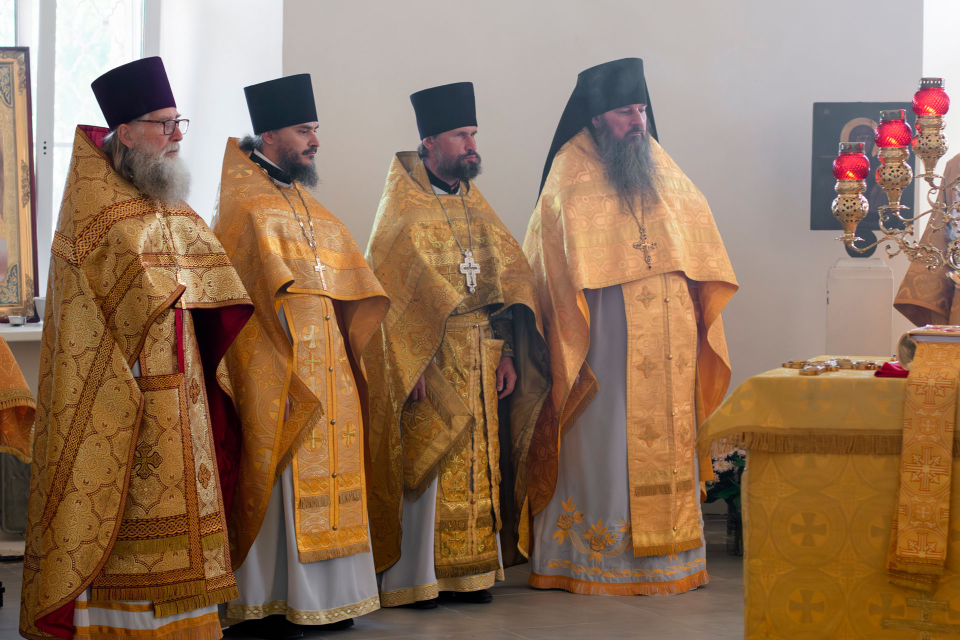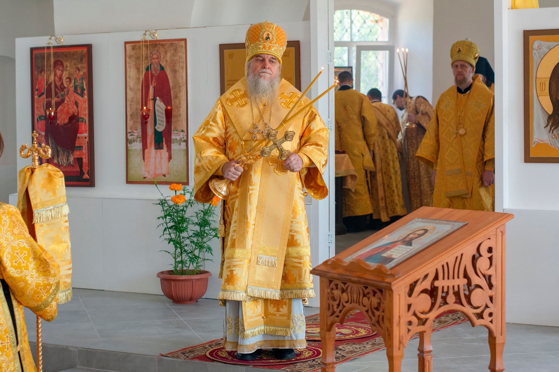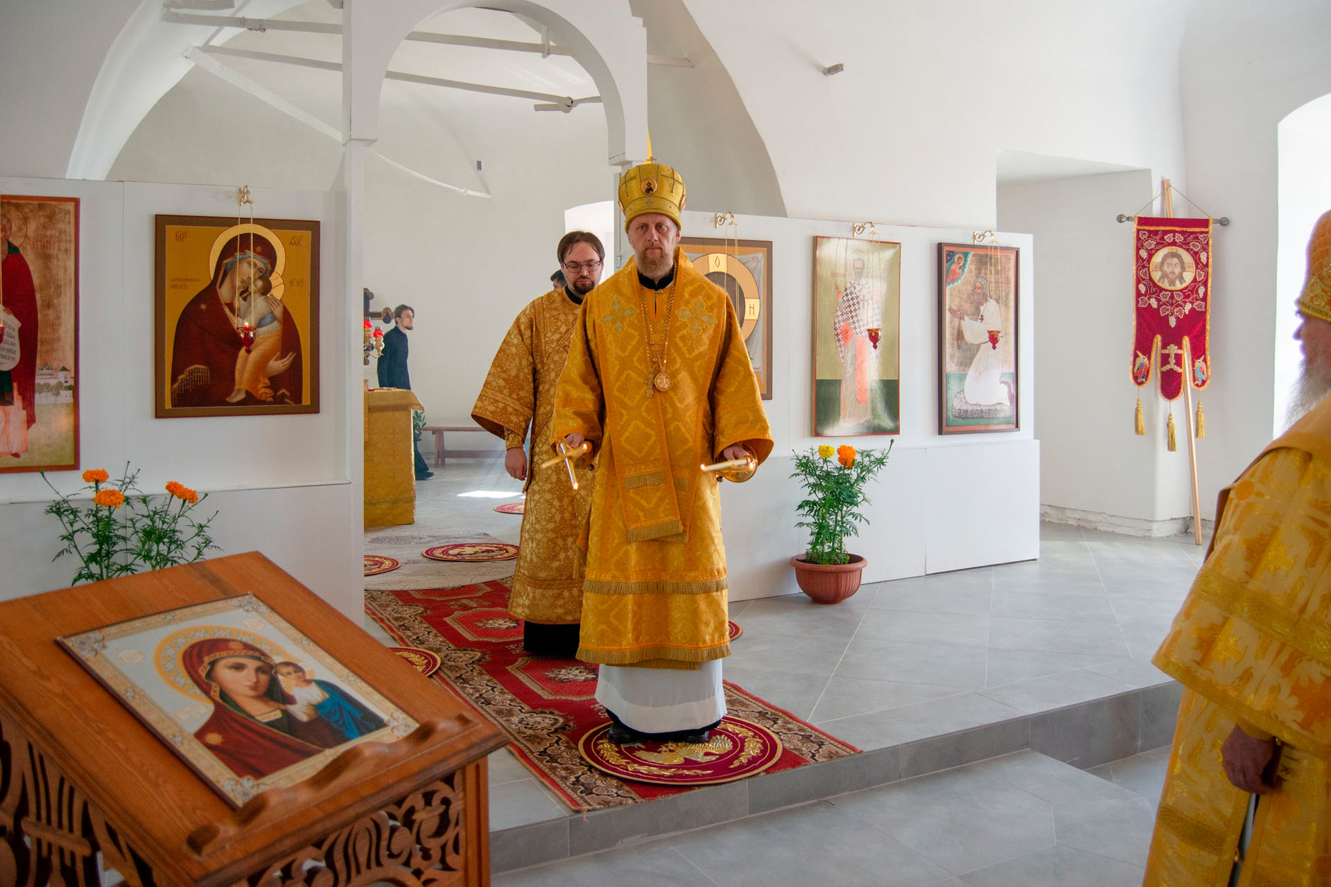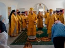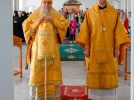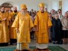 15 августа в годовщину блаженной кончины старицы Ксении Красавиной в новом приписном храме Богоявленского женского монастыря - храме Живоначальной Троицы села Архангельского епископ Рыбинский и Романово-Борисоглебский Вениамин совершил Литургию.