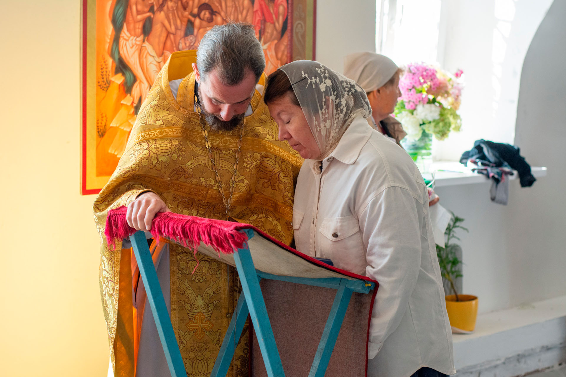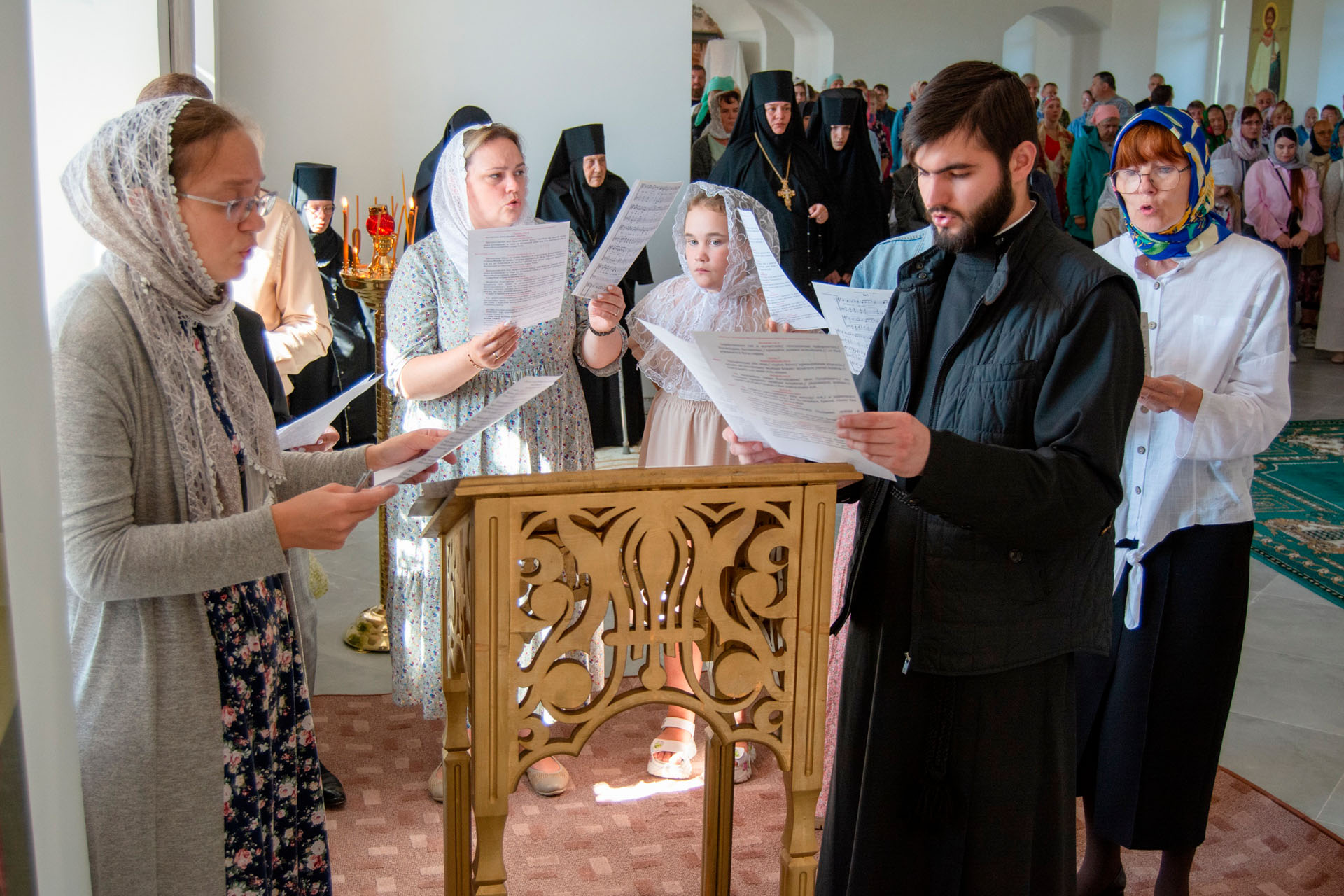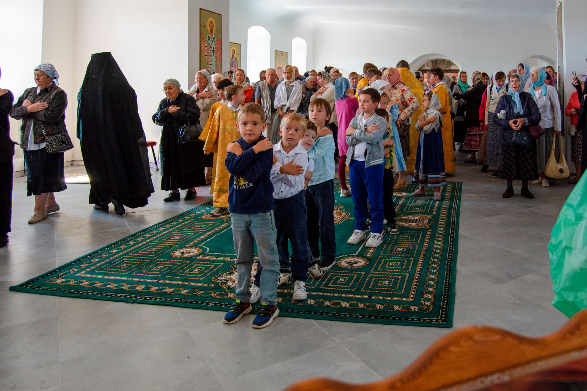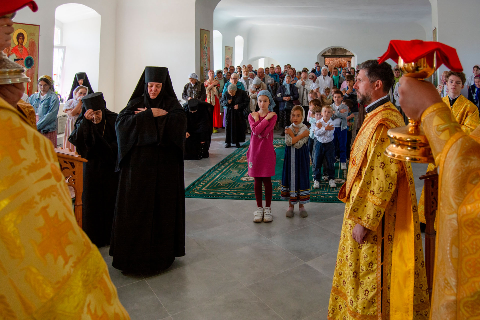 15 августа в годовщину блаженной кончины старицы Ксении Красавиной в новом приписном храме Богоявленского женского монастыря - храме Живоначальной Троицы села Архангельского епископ Рыбинский и Романово-Борисоглебский Вениамин совершил Литургию.