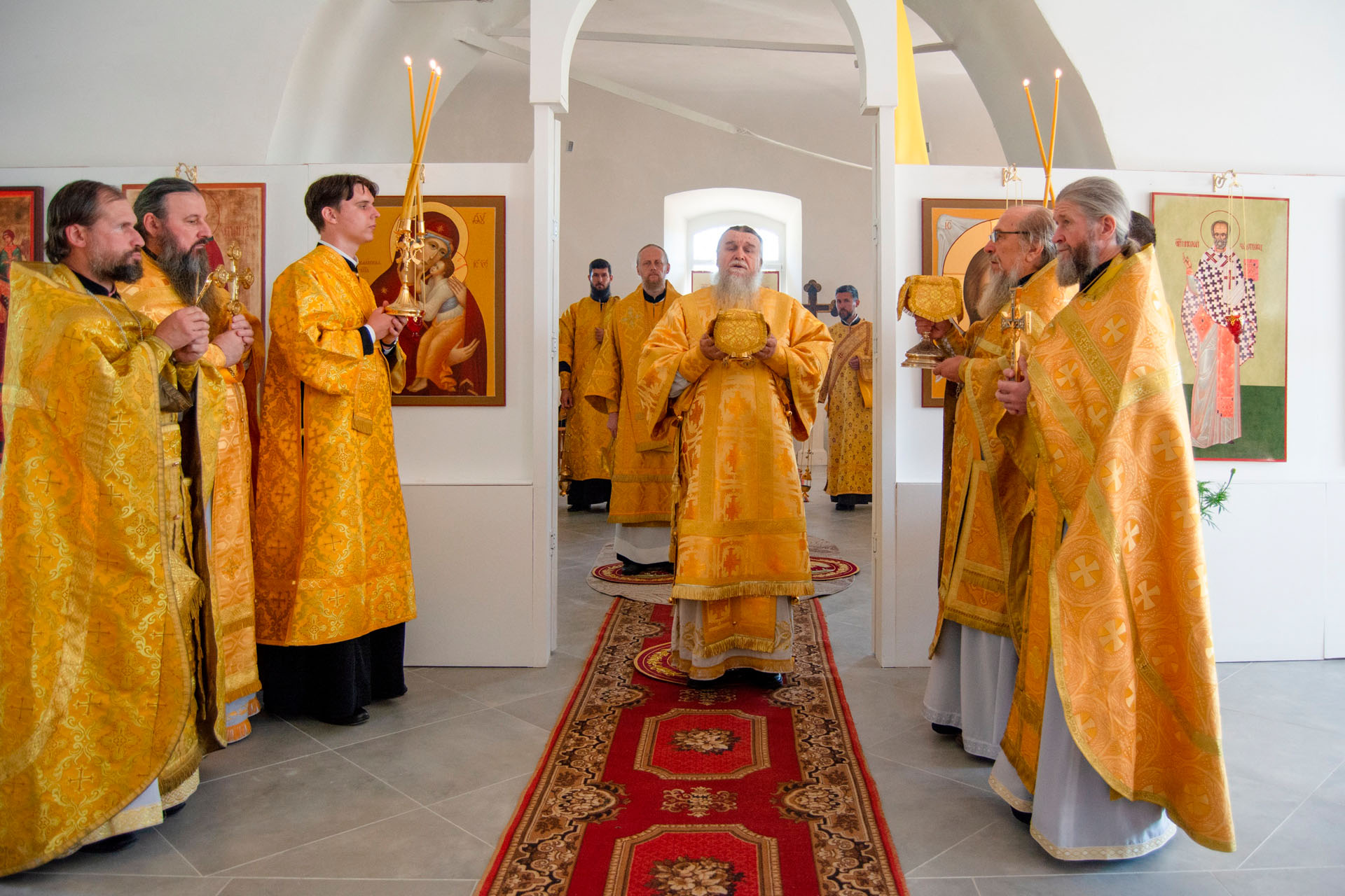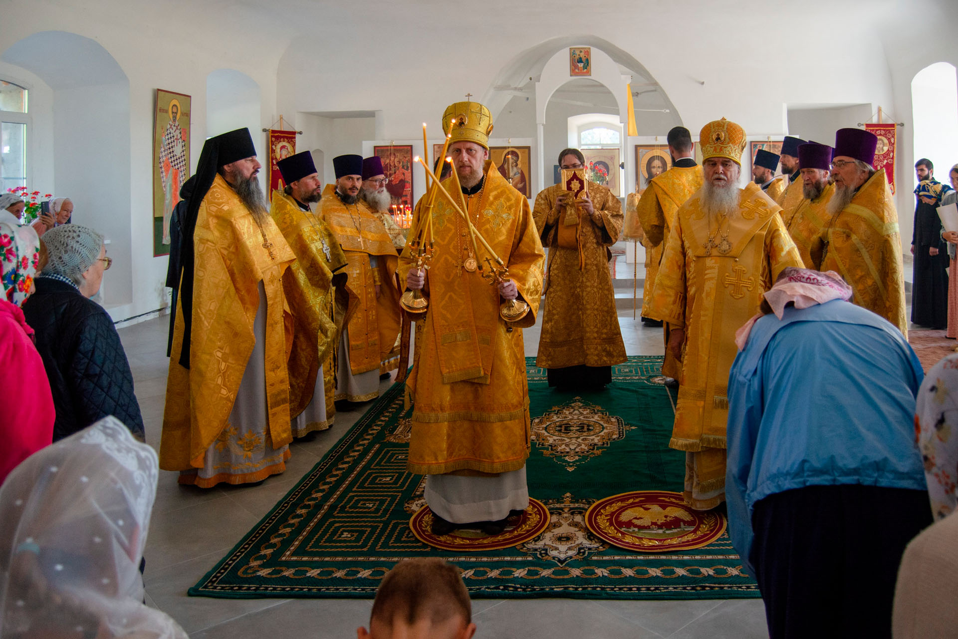 Его Преосвященству сослужили: епископ Переславский и Угличский Феоктист, благочинный Мышкинского округа протоиерей Александр Иванов, благочинный Угличского округа игумен Николай (Шишкин), настоятель храма священник Андрей Колесников, протоиерей Димитрий Беляев, благочинный Яхромского благочиния Сергиево-Посадкой епархии священник Сергий Бернадский, протоиерей Сергий Круду, благочинный Некоузкого округа Рыбинской епархии священник Алексей Калинин, священник Владимир Юрченко, диакон Владимир Принёв, диакон Алексей Герасимов, диакон Олег Юрков.